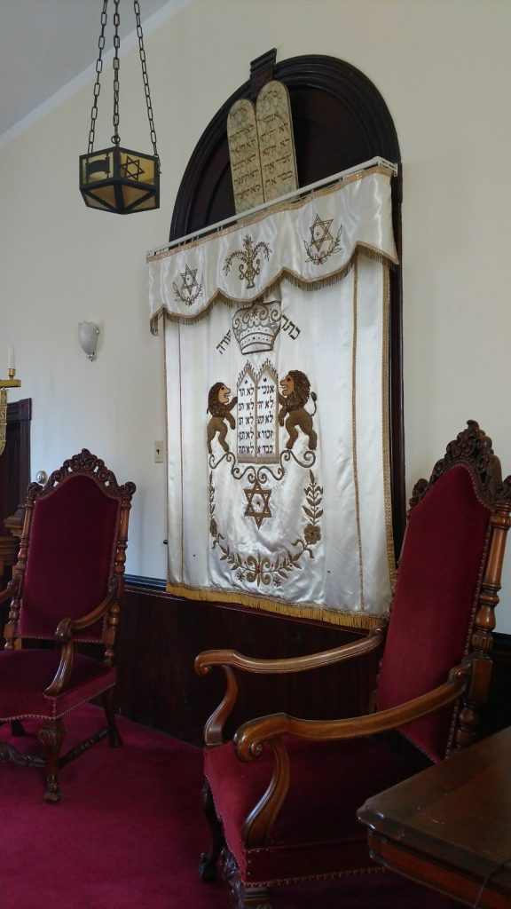 The interior of this historical synagogue remains largely as it was when first established. The original desk now serves as the bimah, the iron and frosted-glass eternal light or Ner Tamid is hung, while the foot pump organ and the quaint rabbi’s quarters give one a sense of stepping back in time.